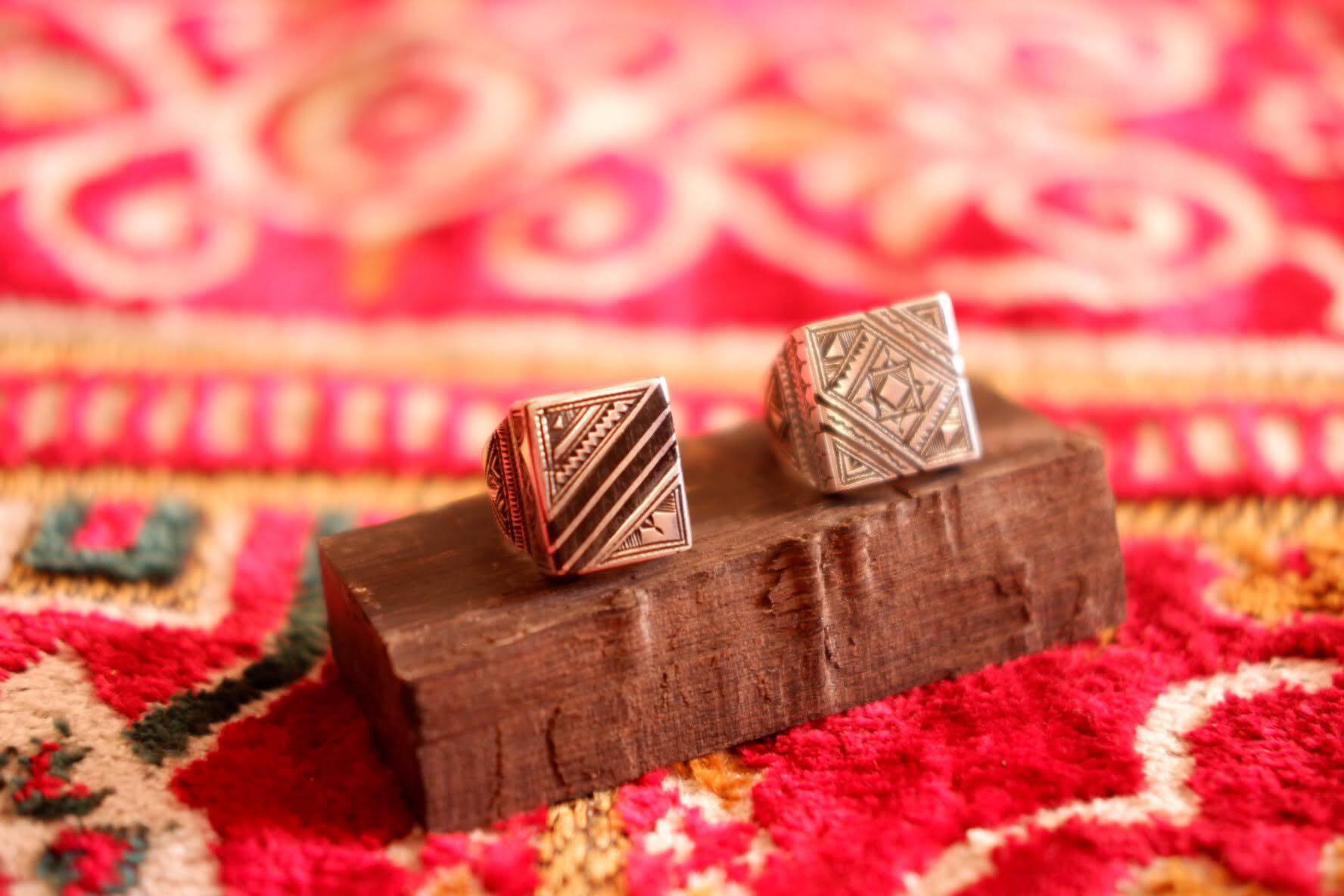 サハラ砂漠を旅するトゥワレグ族の職人が、一つひとつ手作業で彫り込んだ伝統のシルバーリング。幾何学的な模様には、砂漠の風、星空、旅の記憶が刻まれているといわれています。