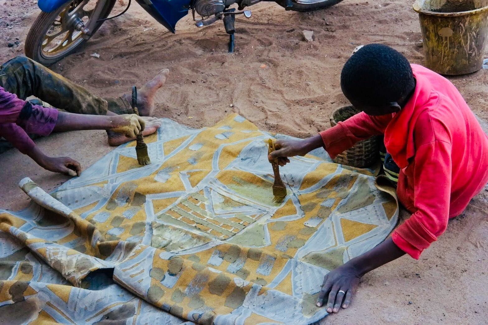 西アフリカのマリ共和国発祥の伝統的な泥染め布。