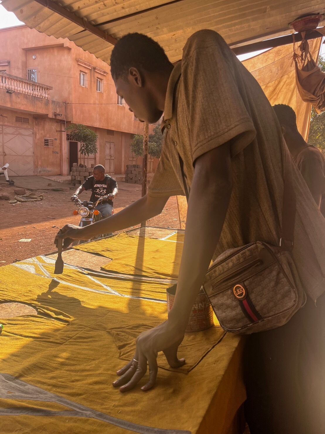 現地で採取された泥・植物染料などの自然素材を用いて、マリ産の手織りコットンを職人が1枚1枚手作業で染め上げています。